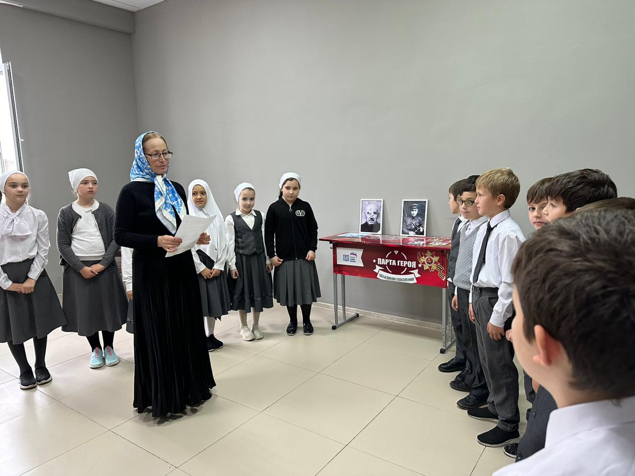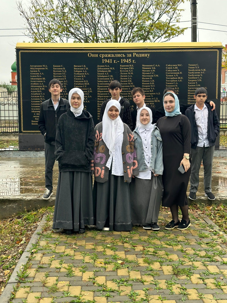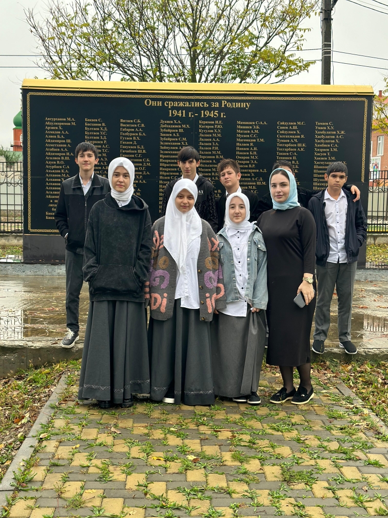 Учитель чеченского языка и литературы Яха Беслановна провела экскурсию для юнармейцев школы. Юнармейцы с большим интересом узнали, что их односельчане были участниками ВОВ. Делясь впечатлениями юнармеец Тарамов Магомед отметил: «Наша школа с особой важностью подходит к изучению истории Родины. Для нас очень важна и интересна информация, которую мы сегодня услышали. Мы благодарны учителям за то, что они передают нам свои знания и опыт. Очень важно, чтобы была такая преемственность поколений. Это история нашей страны и каждый должен ее знать».