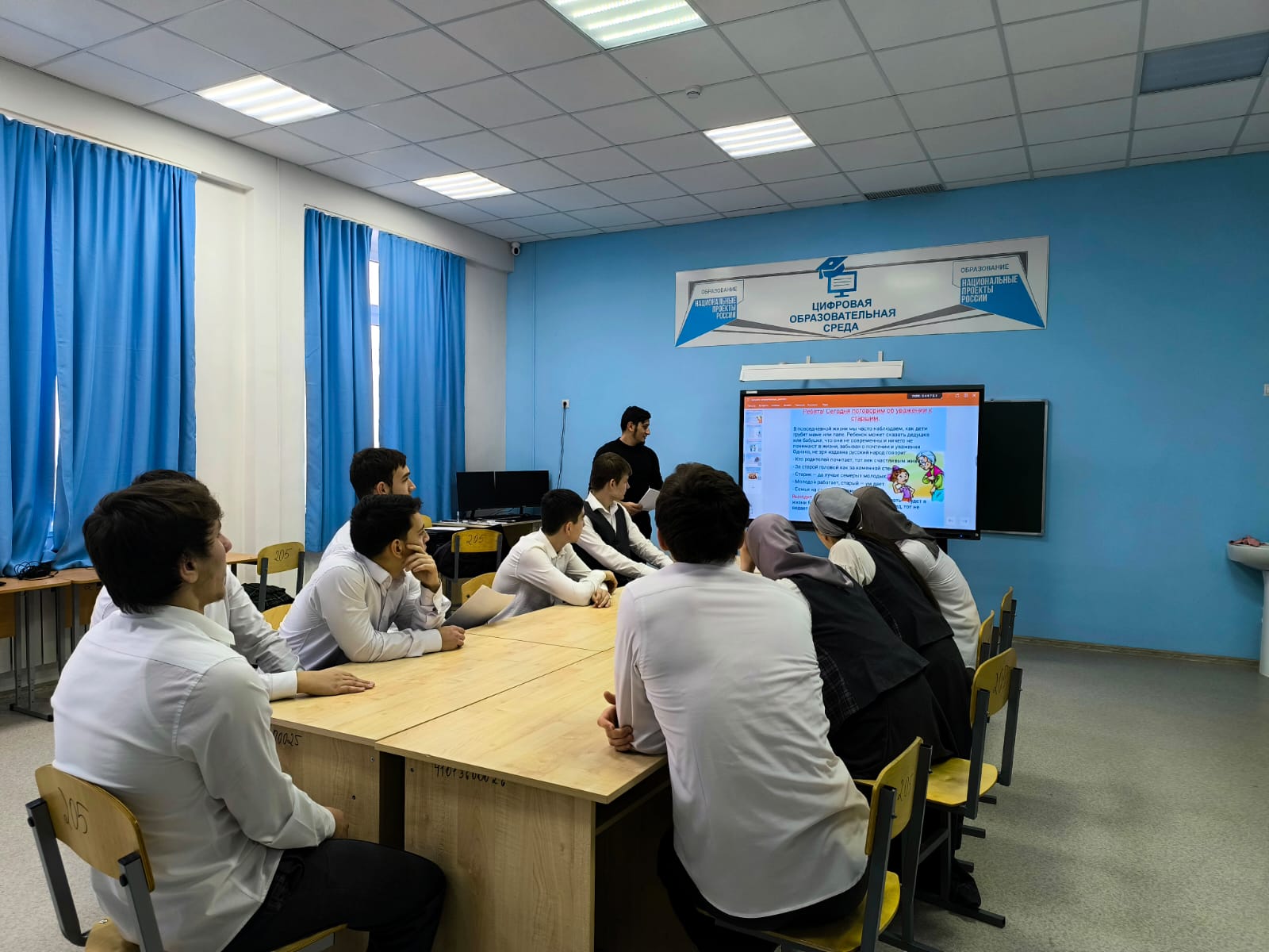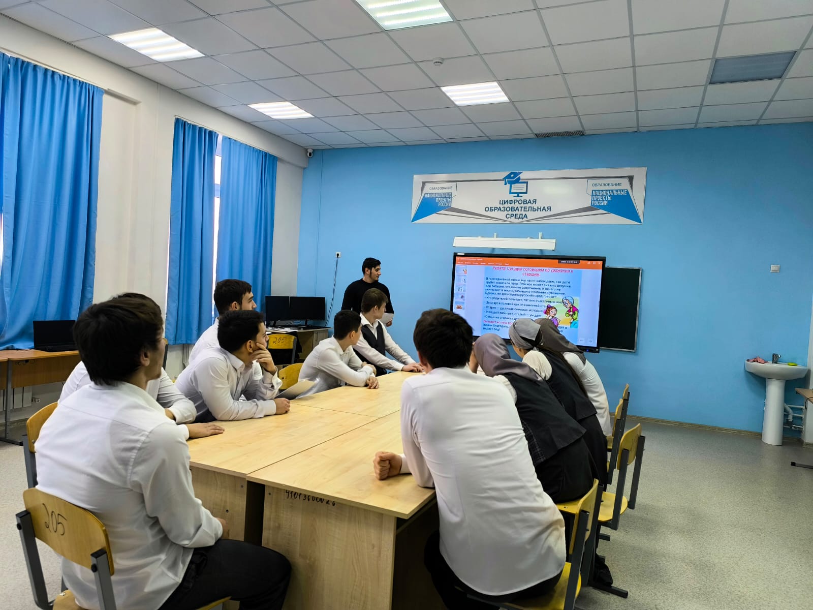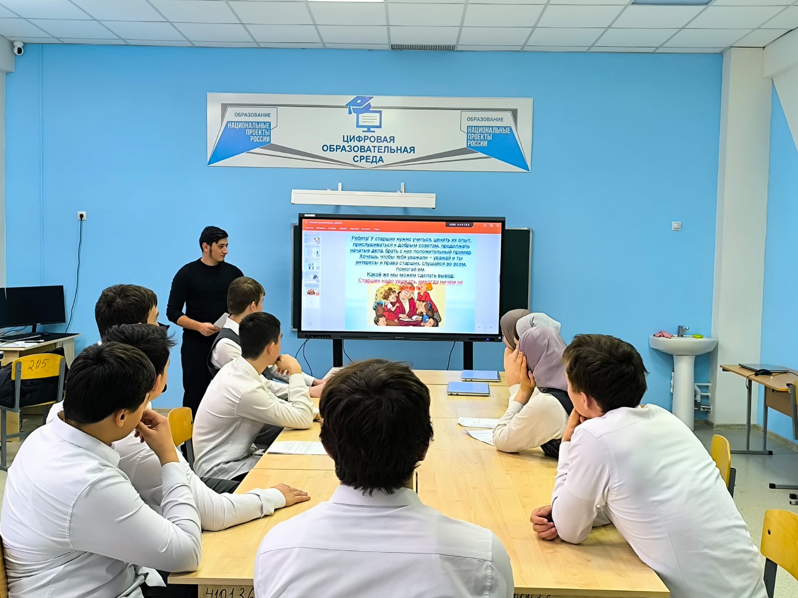 В рамках реализации Единой Концепции духовно-нравственного воспитания и развития подрастающего поколения Чеченской Республики, с целью ознакомления подрастающего поколения педагог по ДНВ Жабраилов Абдул-Керим провел беседу в МБОУ "СОШ №2 ст. Горячеисточненская" по популяризации традиционных духовных ценностей народов Чеченской Республики на тему: «Уважение и почитание к старшим– это главное». Род человеческий состоит из поколений. В мире живут одновременно несколько поколений: уходящее, находящиеся в расцвете творческих сил, выходящее и только что появившееся. Уважение, почитание старших поколений — закон жизни. Уважать старших надо уже потому, что в ней — мудрость многих поколений. Уважают не седины сами по себе, а то что за ними, поэтому всеобщим уважением и почетом должны пользоваться они. Чем больше прожил человек, тем больше он оставил в мире от себя, от своей души, тем высшую ценность представляют для последующих поколений его дела.