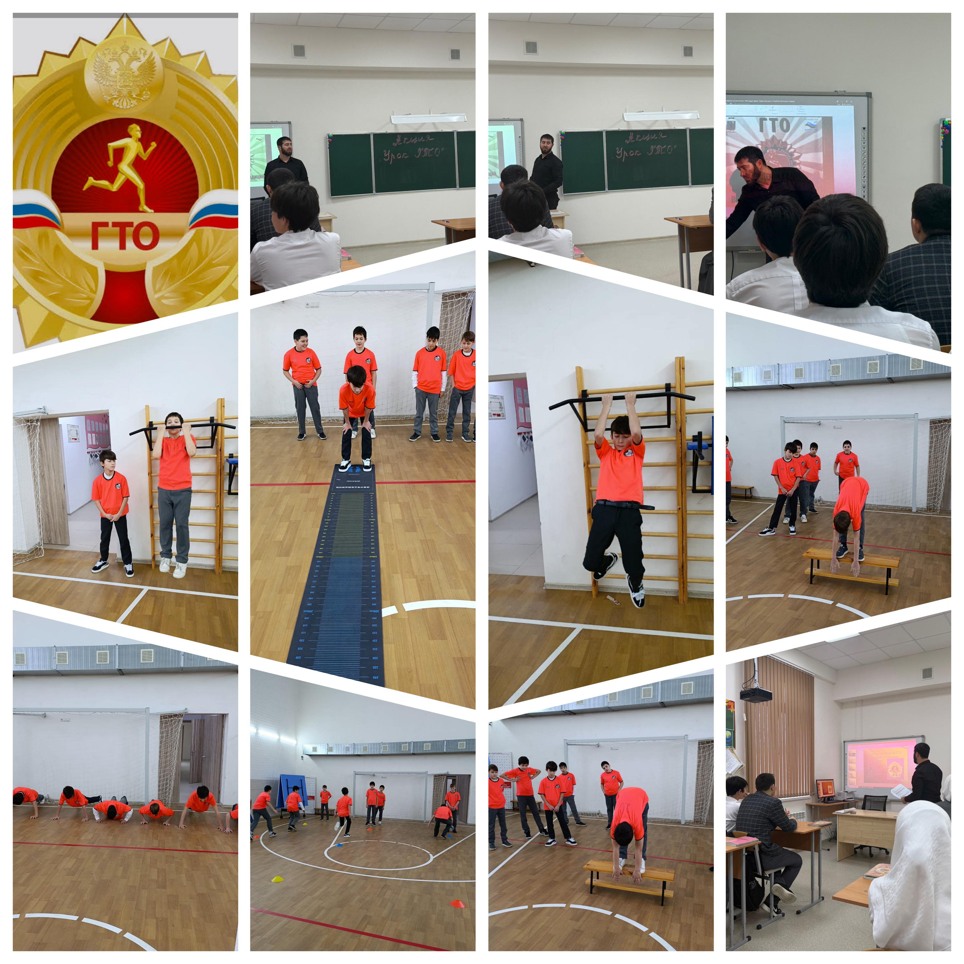 Учитель физической культуры Бурсагов Тамерлан Асланбекович познакомил учеников с историей ГТО. В ходе мероприятия ребята познакомились с презентацией по истории, становлению и развитию комплекса ГТО в нашей стране, нормативами выполнения физкультурно-спортивного комплекса «Готов к труду и обороне». Они узнали, что комплекс «ГТО» предназначен для повышения уровня физической подготовленности, самосовершенствования и поддержания здорового образа жизни. В заключение были сделаны выводы, для чего нужно стремиться молодежи 21 века к выполнению нормативов ГТО, к получению знаков отличия?